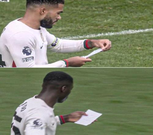 雷速体育10月19日宣 切尔西与诺丁汉森林的比赛进行到尾声阶段,场上比分2-0。导播镜头发现,切尔西的核心球员陆续收到来自教练组的战术小纸条。